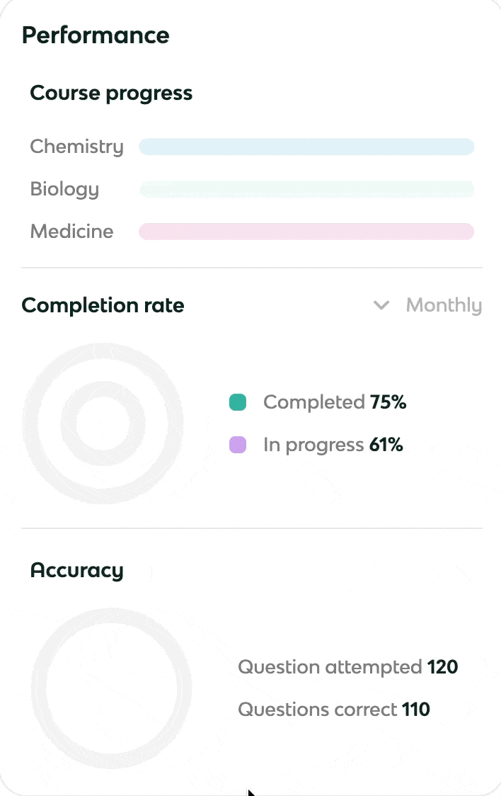 I integrated format-level analytics, accuracy trends, and study patterns so users can instantly understand why they've succeeded and where to focus next.