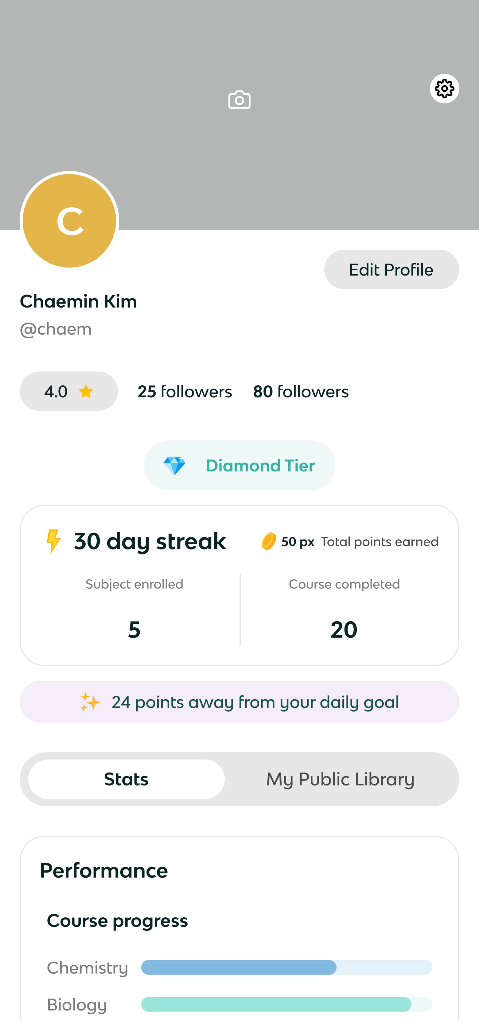 The original profile only displayed a streak and recent activity, providing little insight into how much users had completed or where they were improving.