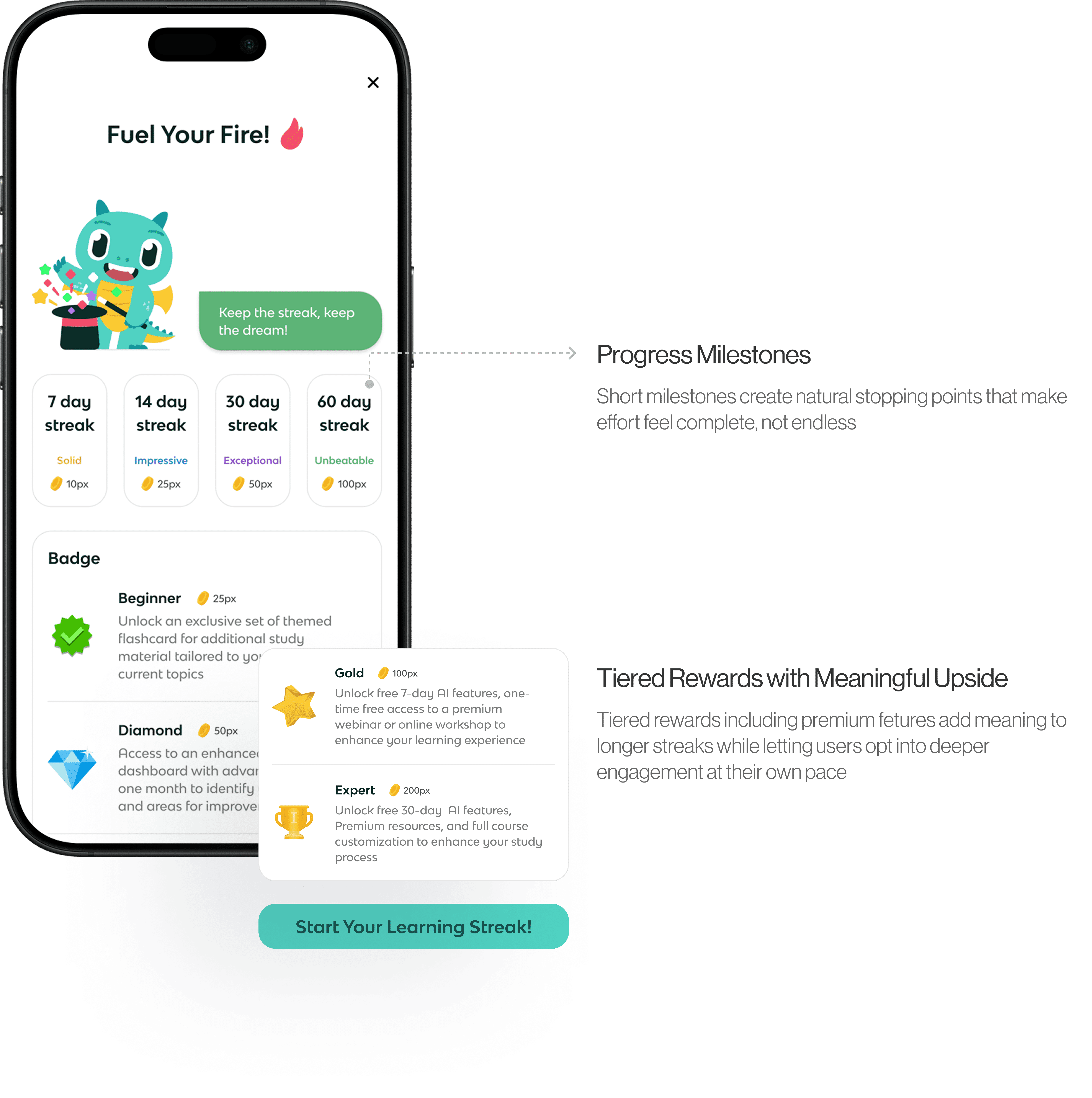This system redefined streaks as milestones worth achieving, transforming ongoing learning into something users could anticipate.