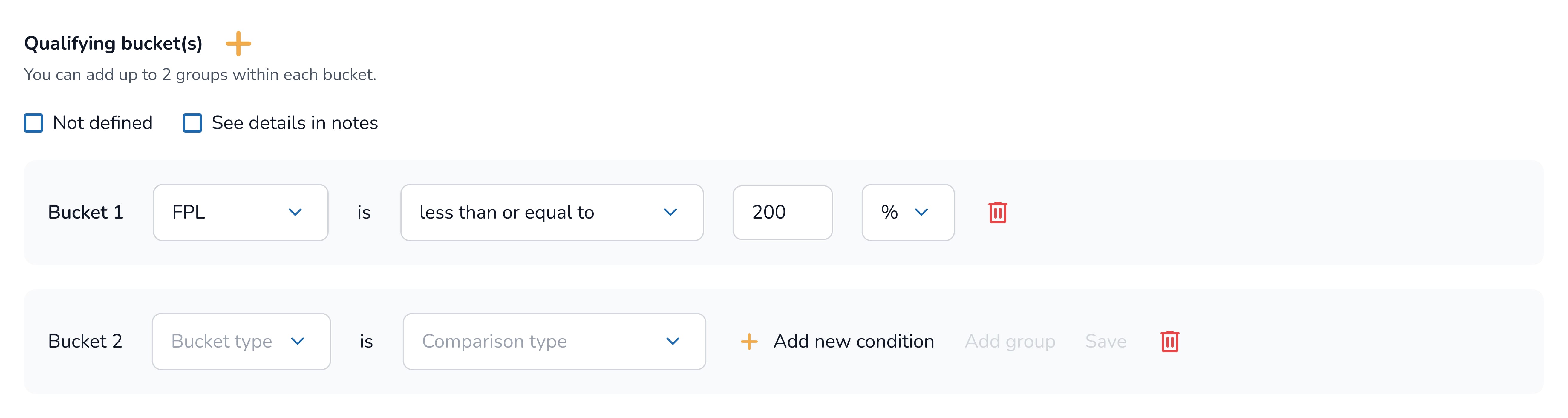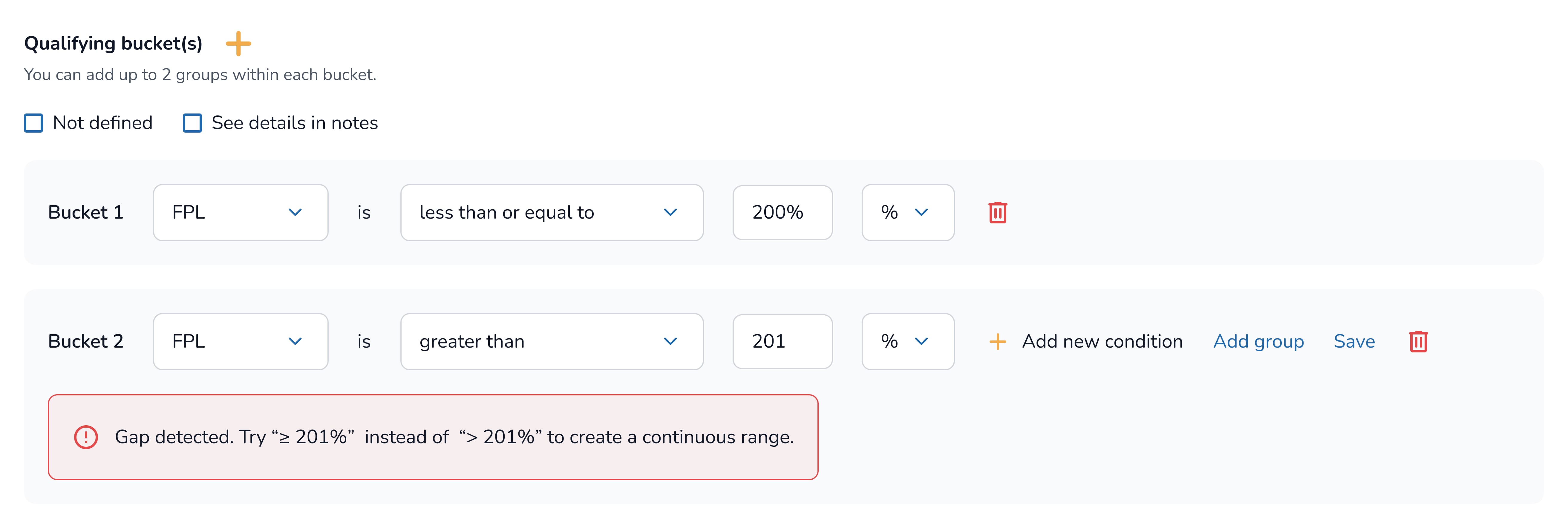 Use case: Hospitals often set multiple income ranges with varying discount levels. (e.g., FPL ≤ 200% gets 100% discount, ≤ 300% gets 50%).