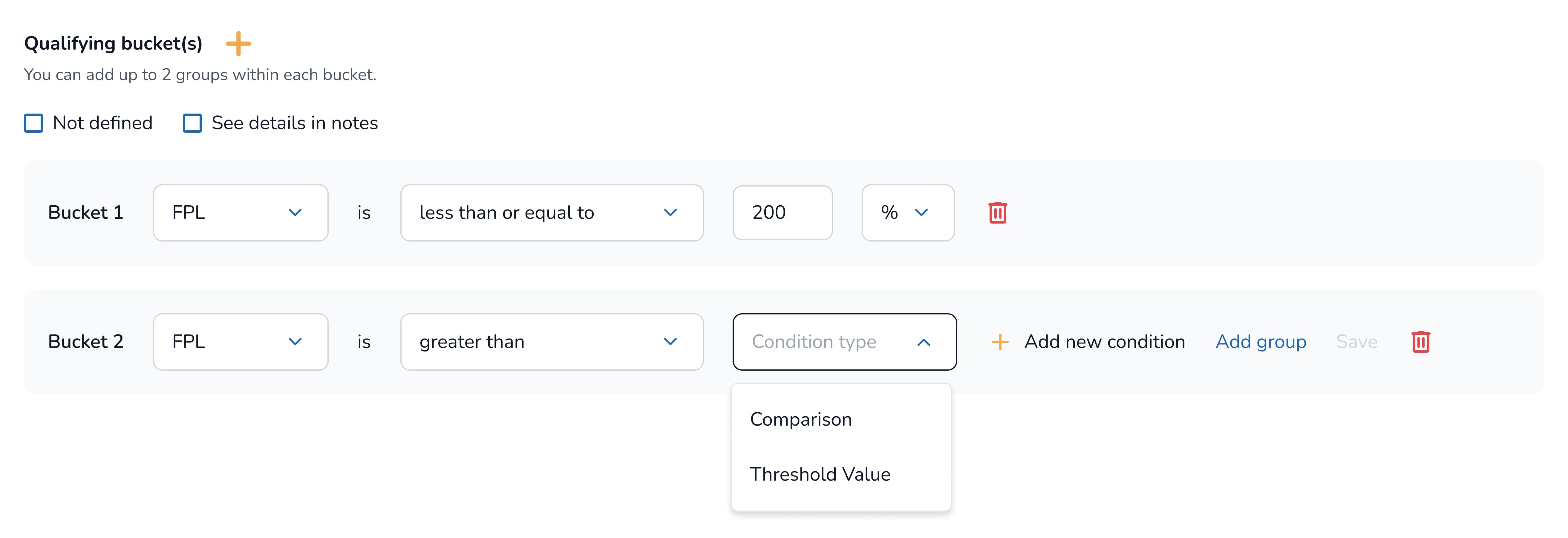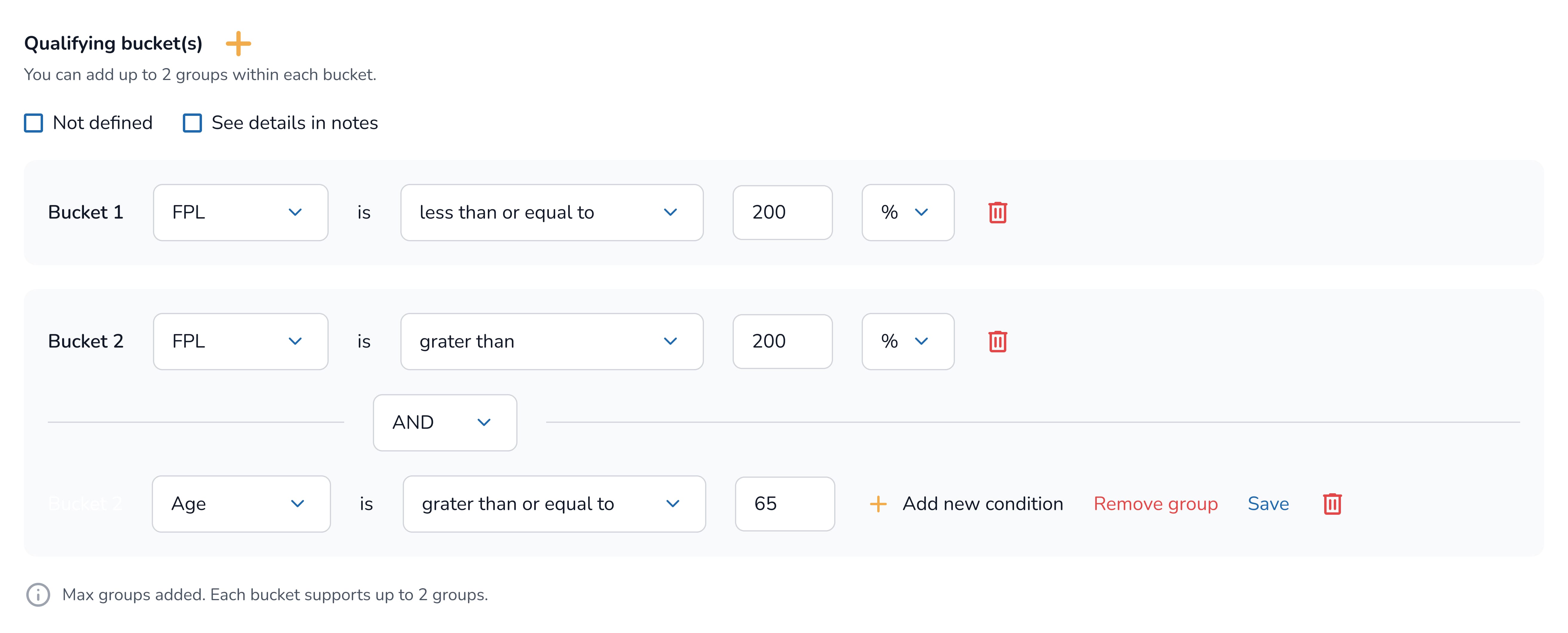 Use case: Programs often require multiple factors to be met simultaneously (e.g., FPL > 200% AND Age ≥ 65).