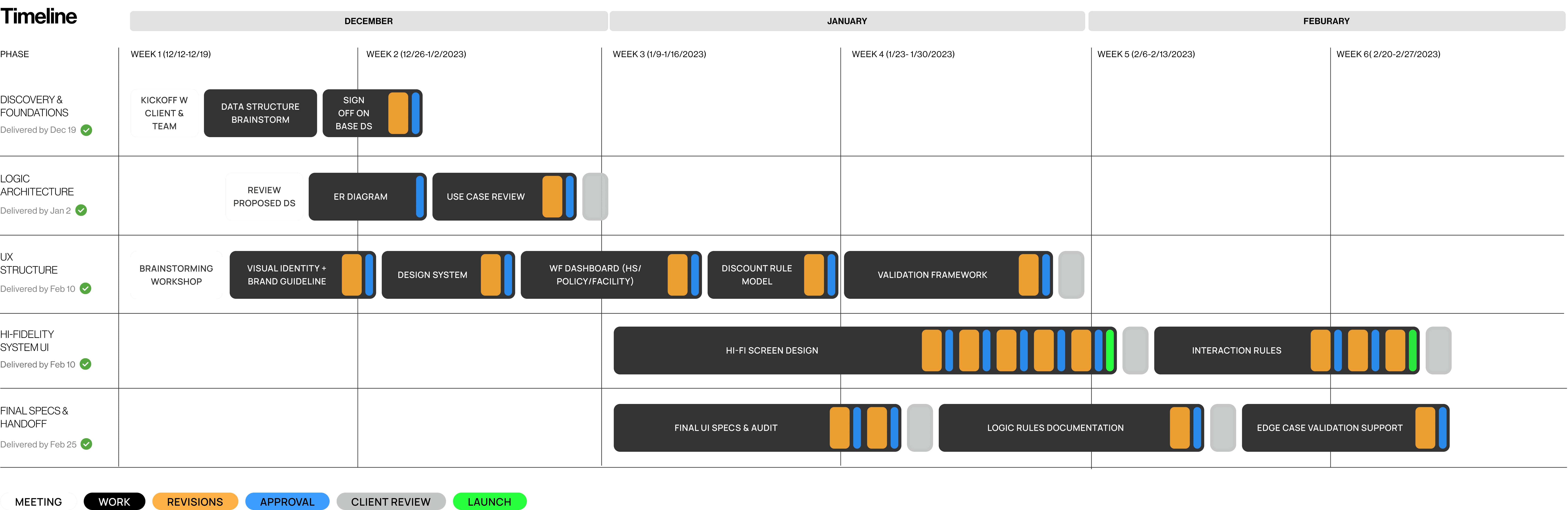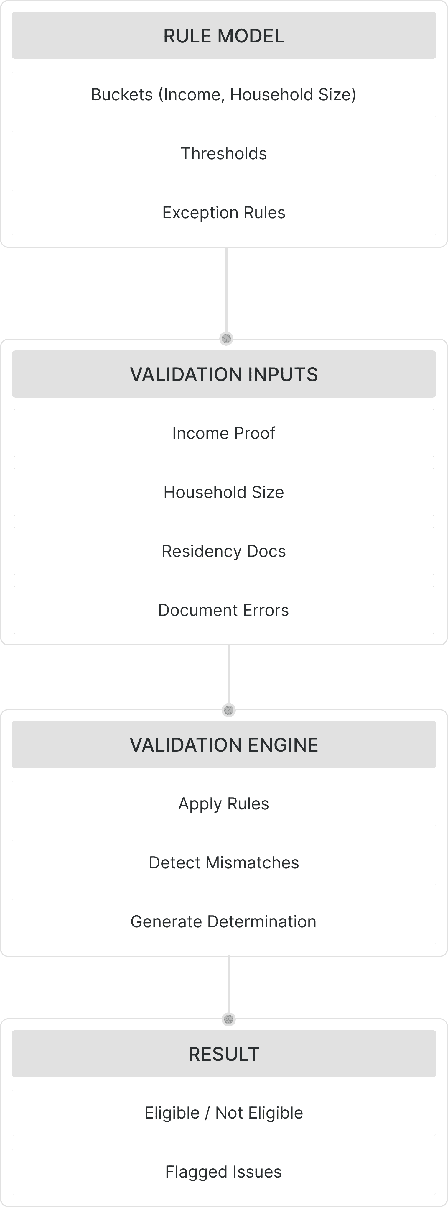 Policy rules were too inconsistent to design around, so I first mapped all entities and rule dependencies into a single unified model that the system could reliably use.