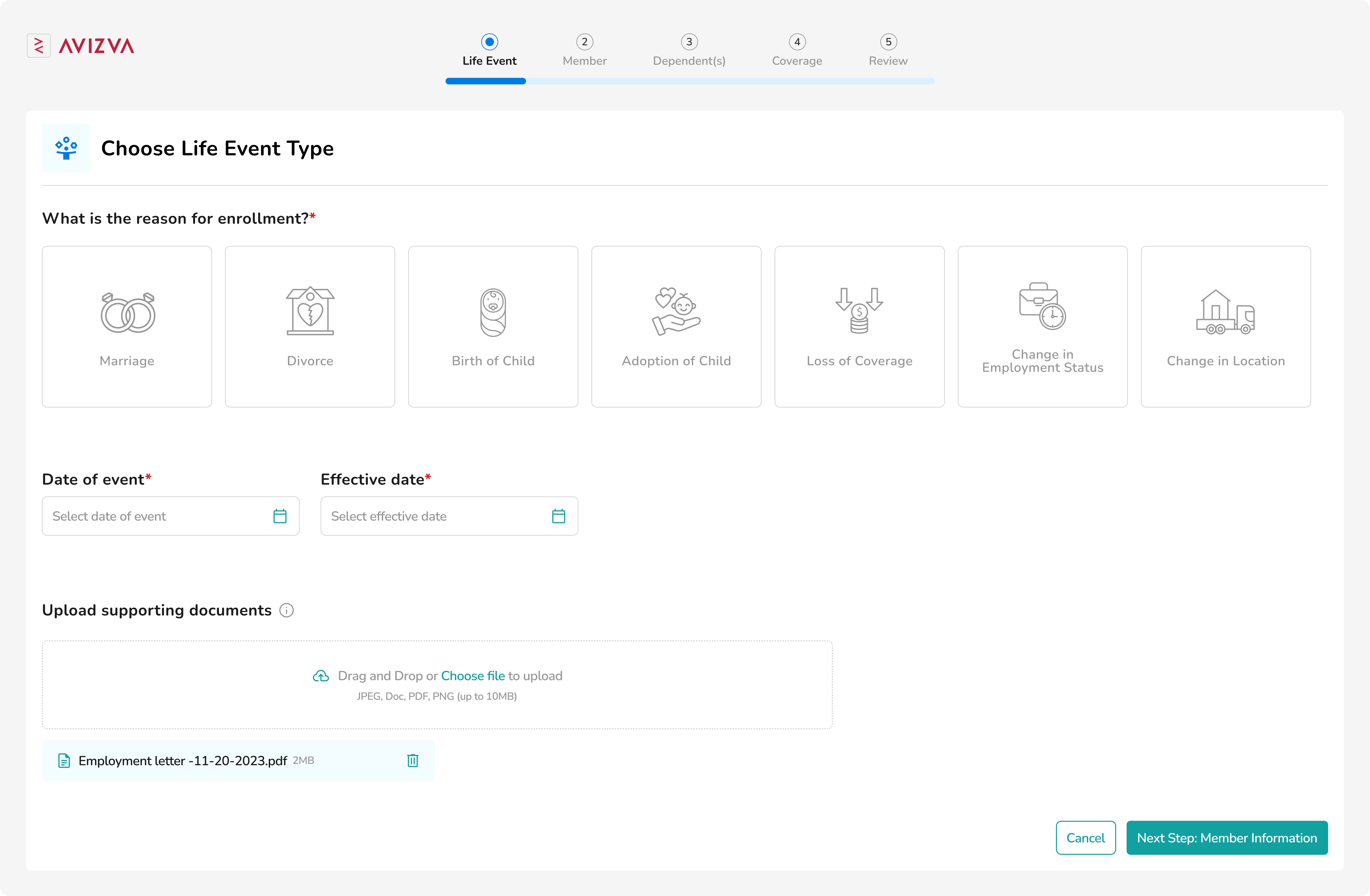 Life events, coverage changes, and dependents are handled in separate stages to prevent incomplete or premature updates.